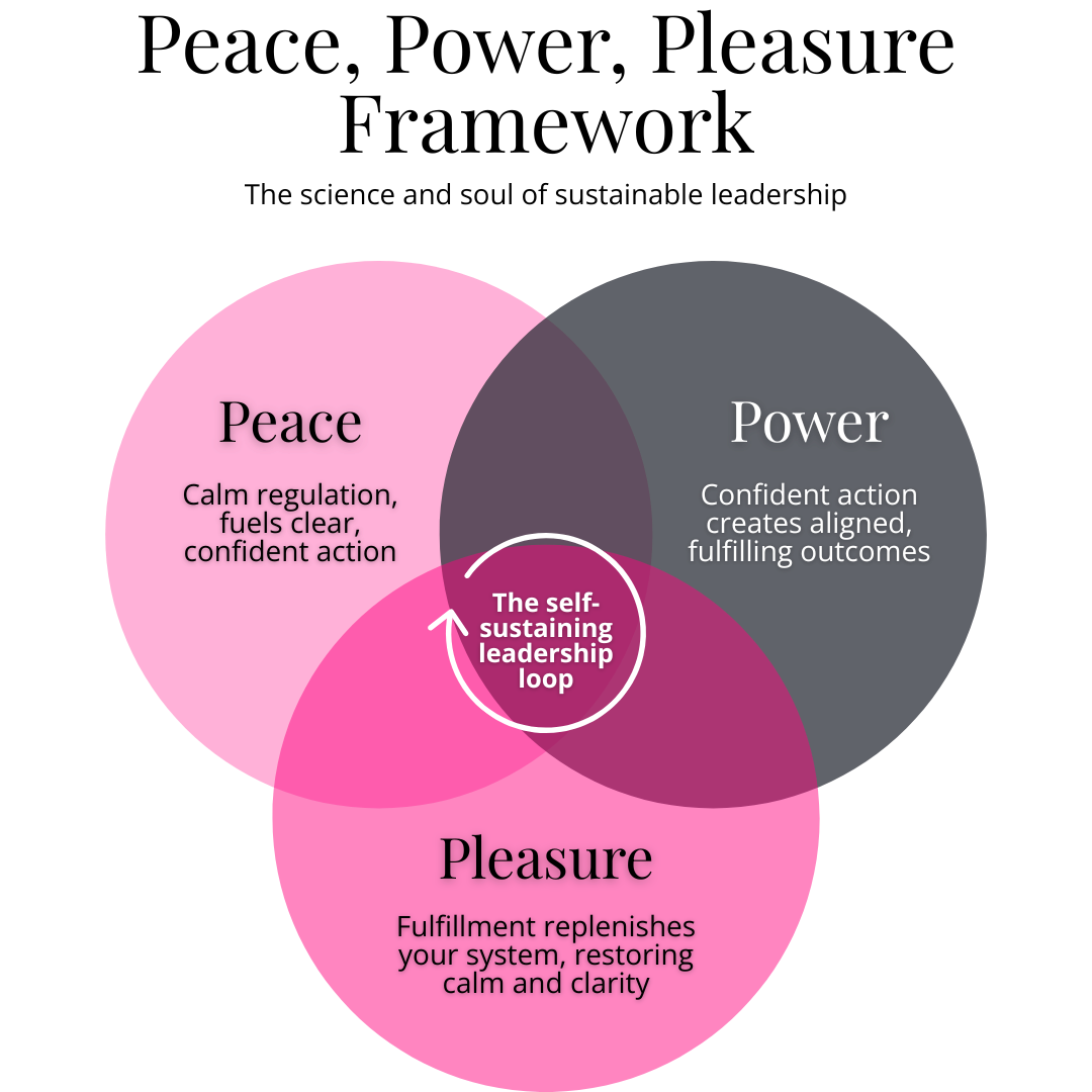 Growth is not about pushing harder, it’s about resourcing yourself better. That’s why everything at V-Suite HQ is grounded in our Peace, Power & Pleasure Framework.